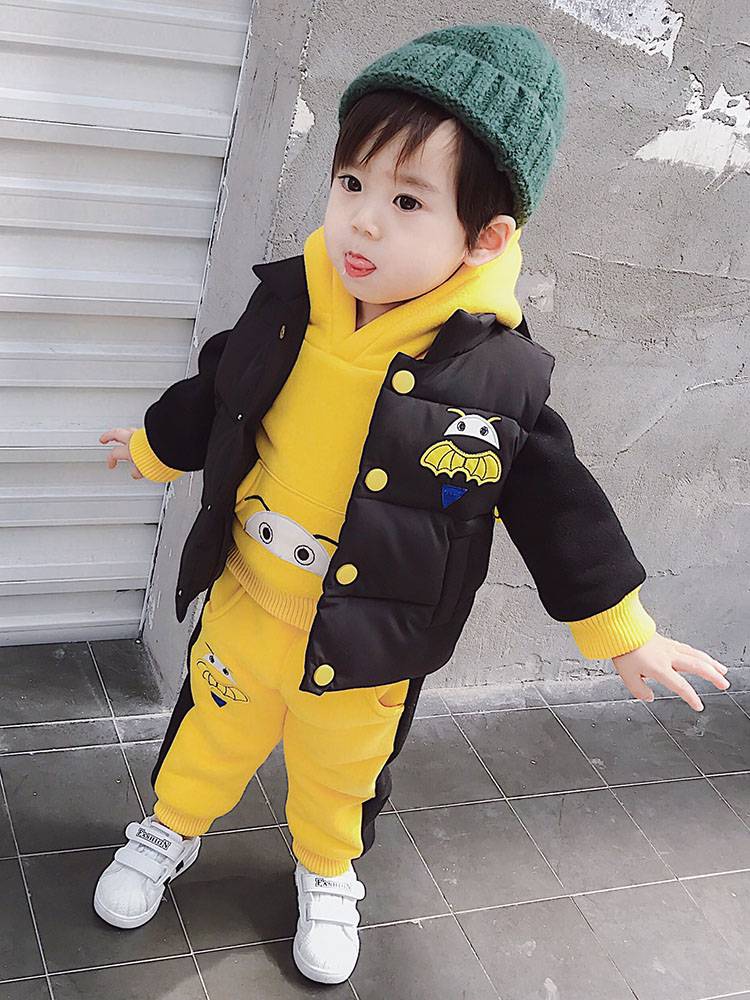 2018冬装新款儿童中小童男童宝宝套装洋气加厚加绒三件套