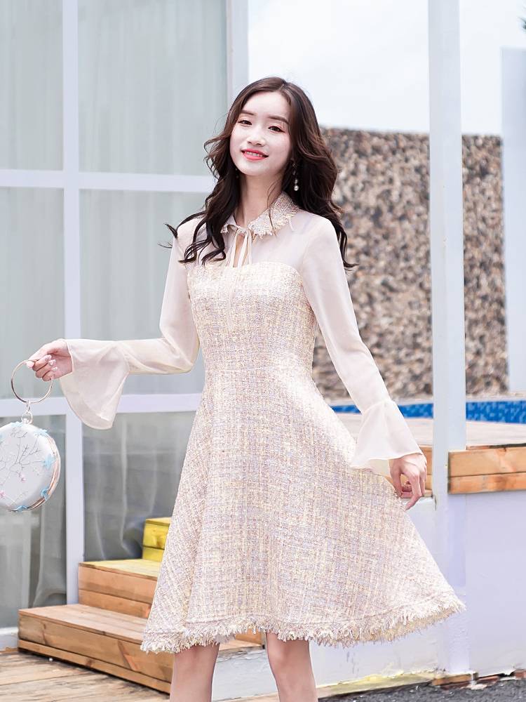 有女人味的连衣裙淑女装早秋长袖裙子初秋秋装衣服