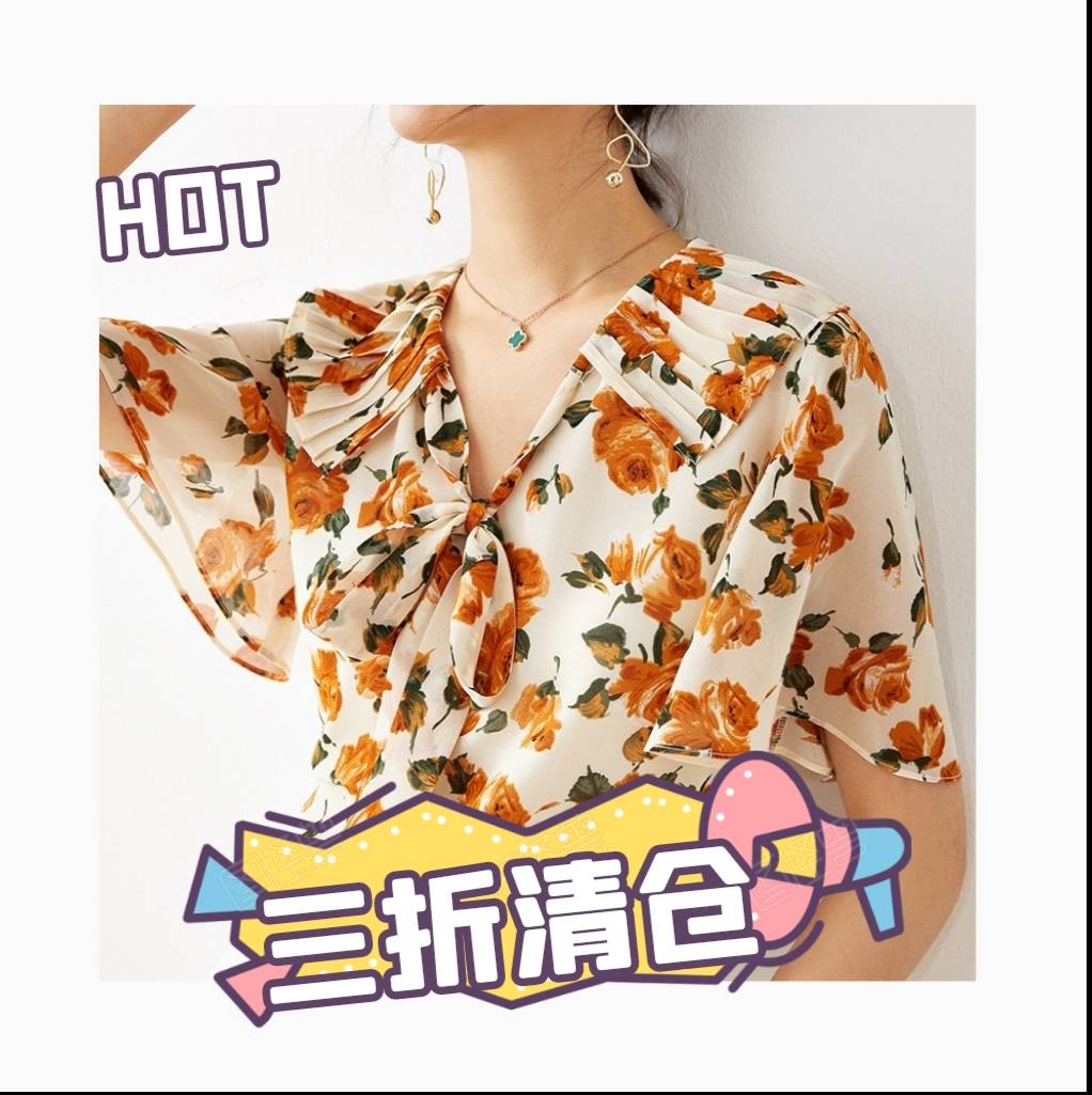 2020夏季新款十三行女装批发海军领碎花印花雪纺衬衫短袖女式上衣