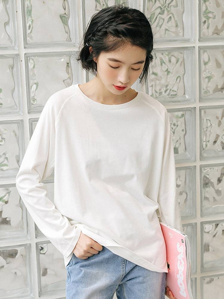 2019早秋新款韩版马卡龙色百搭长袖圆领T恤学生纯色打底衫女