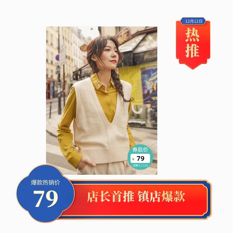 2020秋季新款无袖短款初恋毛衣背心马甲女外穿v领学院风宽松