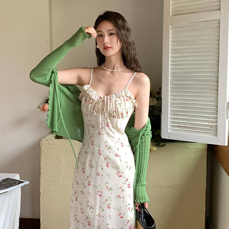 秀熙熙十三行2023夏季新款遮肉显瘦韩版仙女碎花吊带连衣裙子