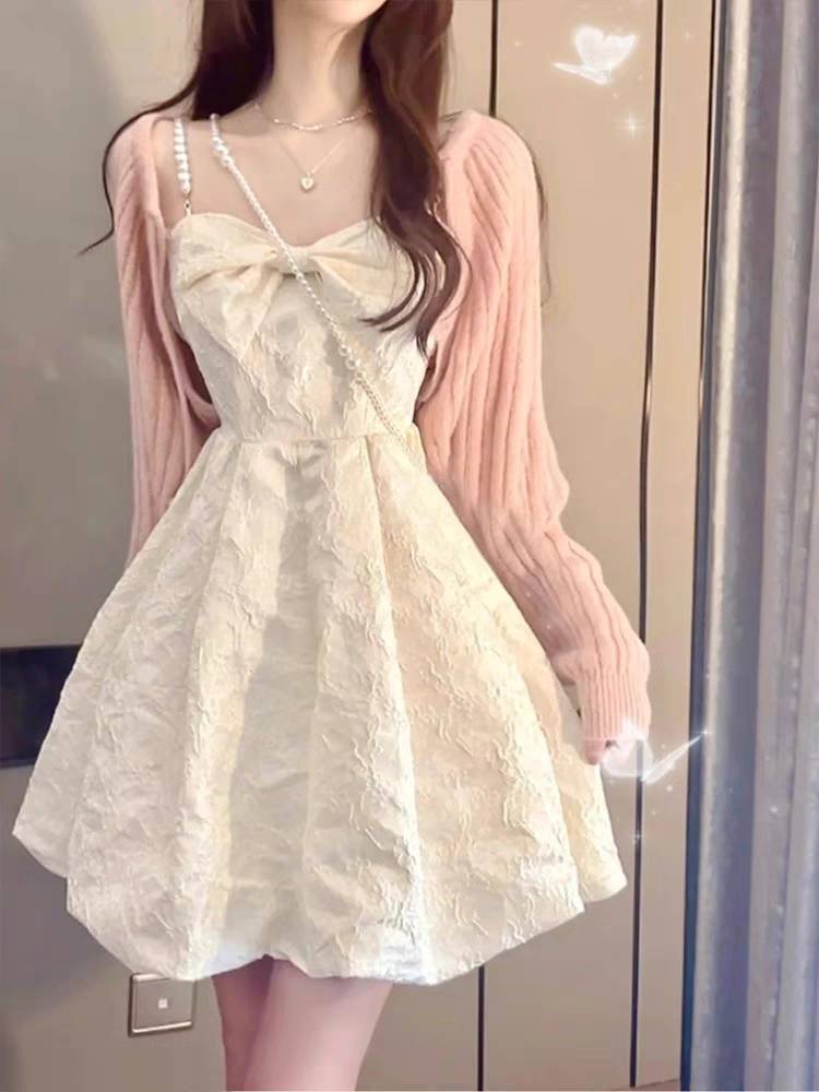 温柔风白色珍珠吊带连衣裙法式小众收腰甜美气质初恋仙女公主裙子