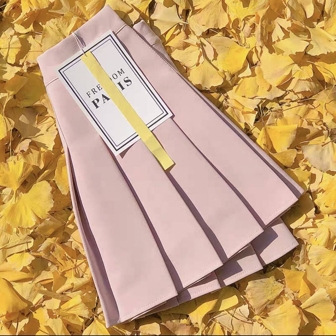 粉色百褶裙女学院风半身裙夏季高腰a字显瘦春秋大码西装料短裙裤