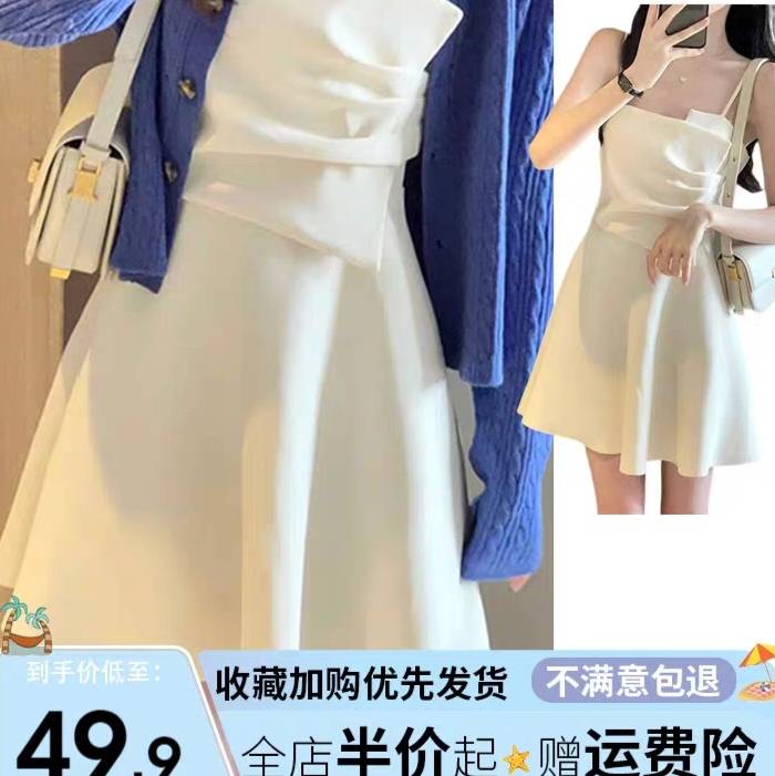 小个子法式气质白色吊带连衣裙子女夏季2023年新款高级感香风短裙