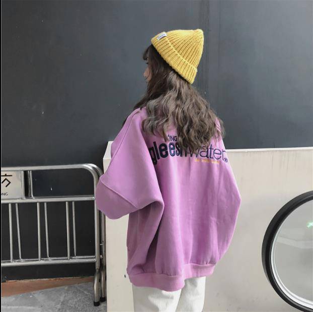 秋冬季新款韩版百搭2018宽松字母加绒加厚保暖圆领长袖套头卫衣女