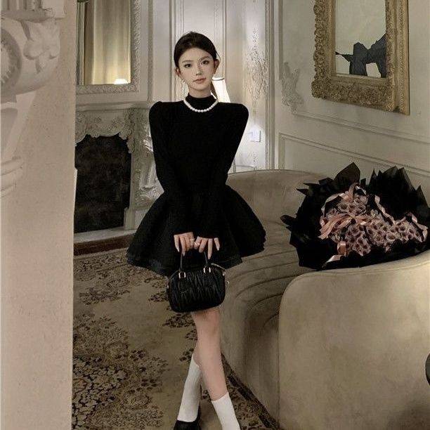 芭比姨千金小黑裙公主连衣裙女秋冬大衣内搭半高领针织裙蓬蓬裙芭比姨千金小黑裙公主连衣裙女秋冬大衣内搭针织蓬蓬裙万圣生日裙