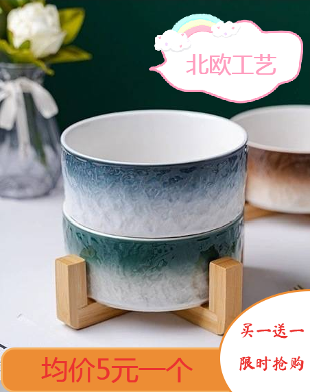 陶瓷宠物碗猫碗创意狗碗北欧泡面汤碗甜品水果沙拉碗餐具木架套装