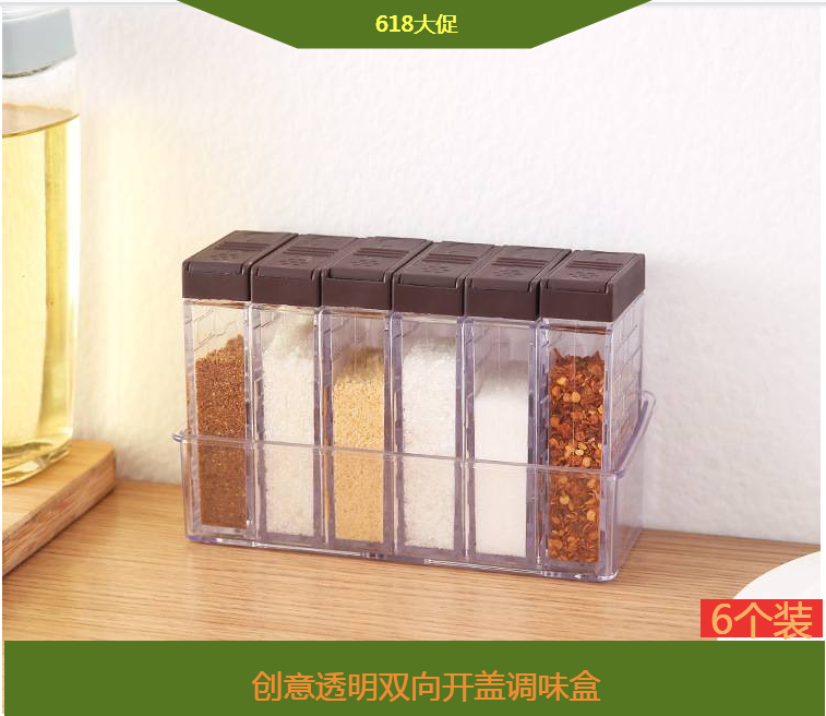创意双向开盖双孔调料盒简约透明带底座6格调味盒6件套多用储物罐