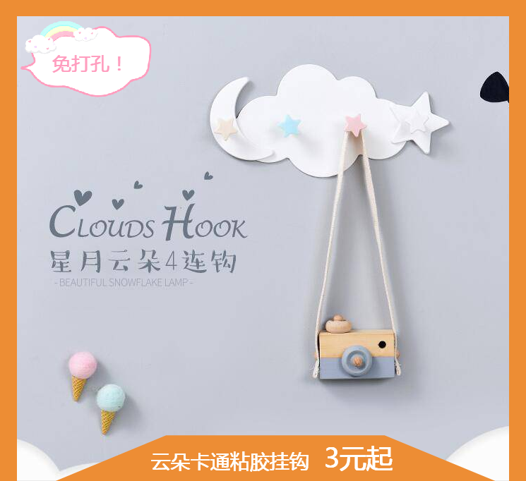 居家 云朵卡通粘胶挂钩壁挂门后挂衣钩浴室墙壁排钩无痕强力粘钩