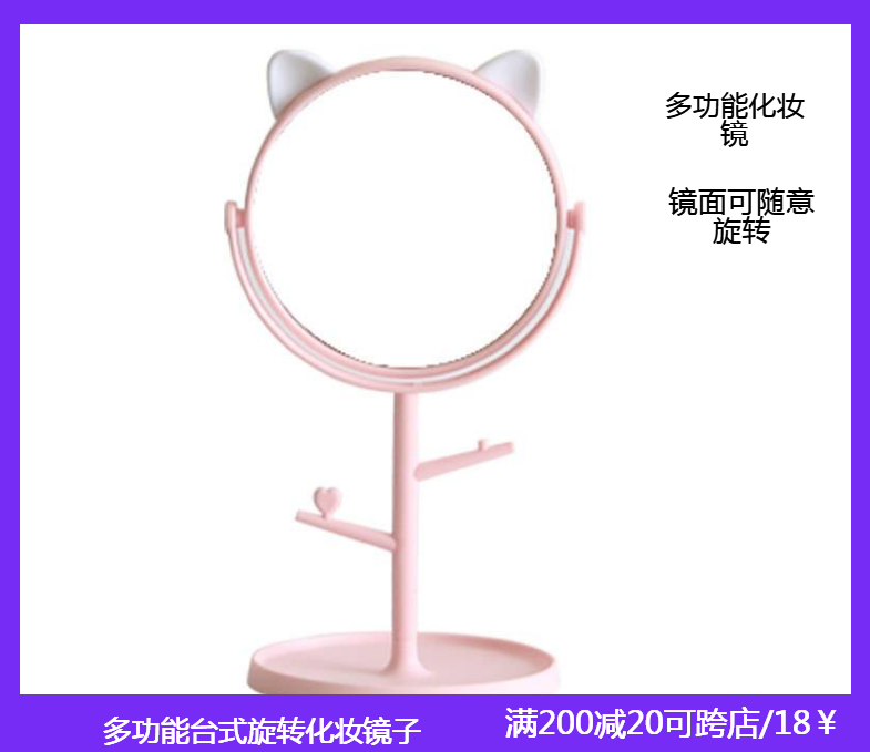 猫耳小圆镜高清多功能台式旋转化妆镜子梳妆台创意简约可爱美容公主镜