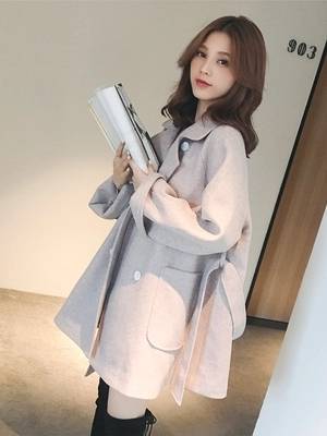 2024年春装新款复古卡其色宽松格纹拼接风衣外套女中长款