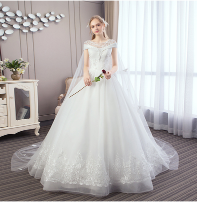 婚纱礼服大拖尾齐地白色婚纱大摆短袖欧美新娘结婚礼服 1688.00 已售:0件