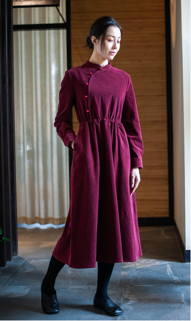 2018女装连衣裙中式文艺灯芯绒旗袍连衣裙R1830 288.00 已售:0件