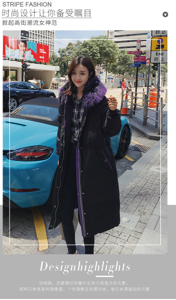 2018新款冬装貉子大毛领连帽加厚字母门襟长款学生羽绒服 320.00 已售:0件