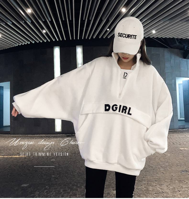 秋冬加绒加厚卫衣女连帽衫韩版学生宽松大码长袖上衣外套