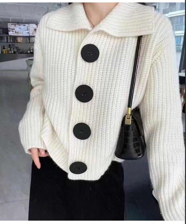 韩系慵懒风翻领针织开衫毛衣 58.00 已售:0件