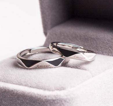 情侣戒指纯银一对学生日韩百搭简约定制刻字男女情侣款潮开口素戒