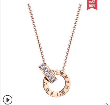 镀金18k玫瑰金项链 女锁骨链短款简约颈链双环吊坠钛钢配饰品