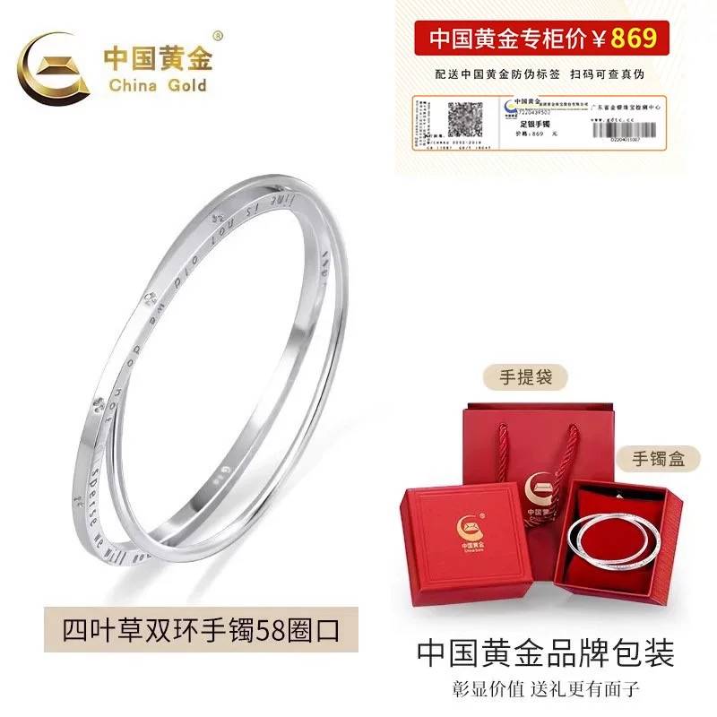 中国黄金双环四叶草手镯实心999纯银镯子女足银女友生日礼物小众s