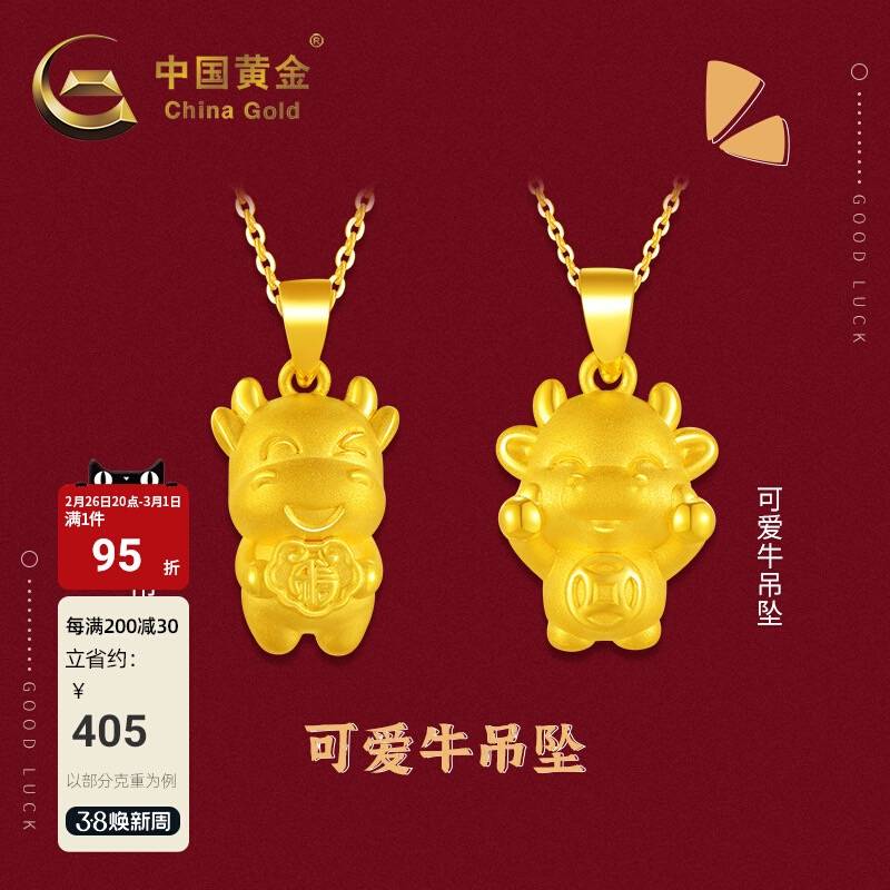 【中国黄金官方店】足金首饰生肖可爱牛吊坠男女气质饰品不含配链