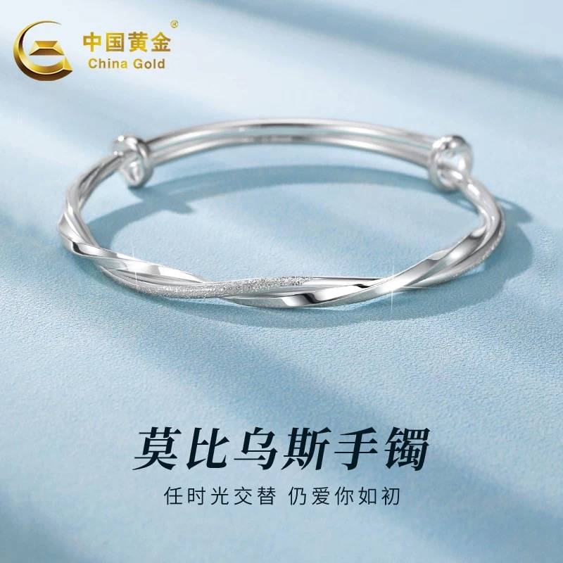 中国黄金莫比乌斯环纯银手镯女新款足银镯子实心银饰母亲节送女友