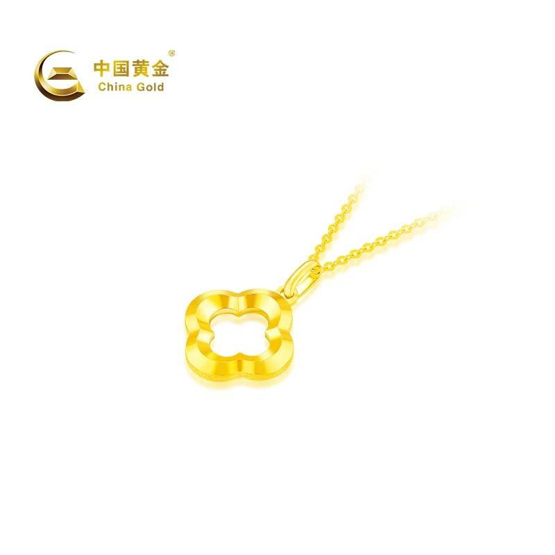 【中国黄金官方店】足金足金镂空光面四叶草吊坠蛇年新品不含配链