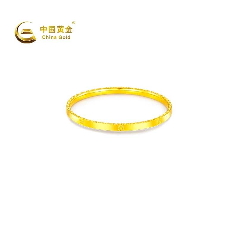 【中国黄金官方店】足金5G仿钻螺纹固口手镯时尚简约首饰蛇年新品