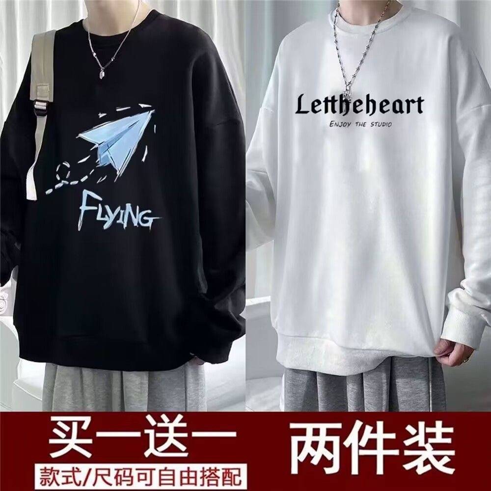圆领卫衣春秋男装宽松打底衫ins潮流长袖男痞帅休闲百搭上衣1/2件