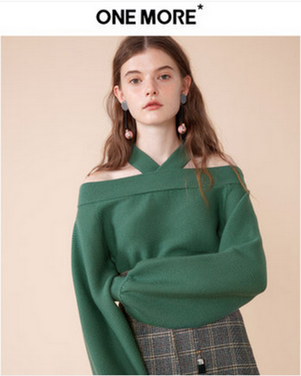 ONE MORE2018秋冬新款挂脖露肩毛衣长袖女上衣针织衫套头打底衫