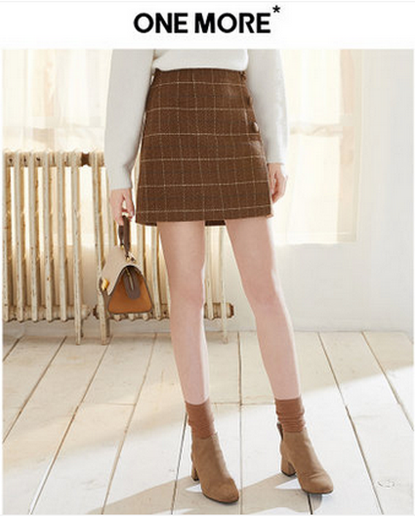 ONE MORE2018冬装新款格子高腰半身裙女chic短裙高腰包臀裙a字裙