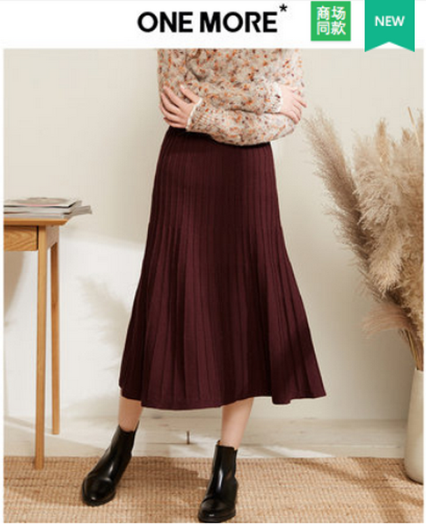 ONE MORE2018冬装新款针织半身裙女中长款高腰伞裙a字裙包臀裙