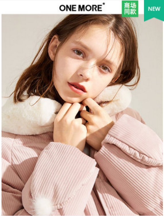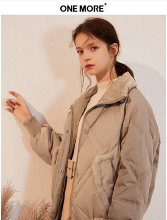 ONE MORE2018冬装新款毛毛口袋时尚羽绒服女韩版加厚外套抽绳宽松
