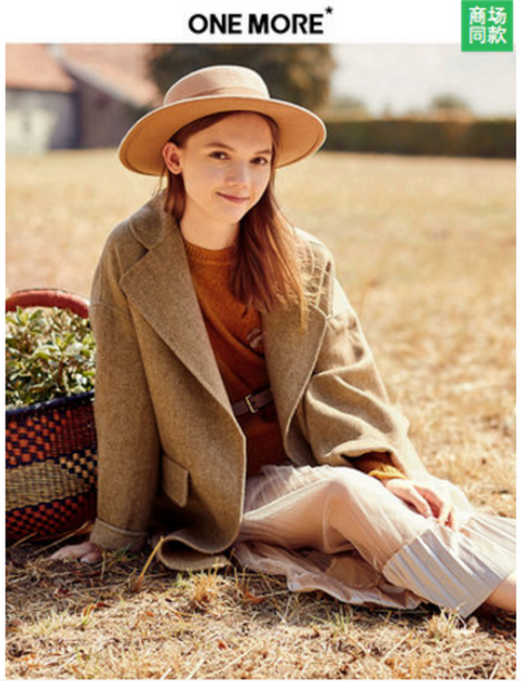 ONE MORE2018冬装新款驼色羊毛大衣女中长款韩版长袖双面毛呢外套