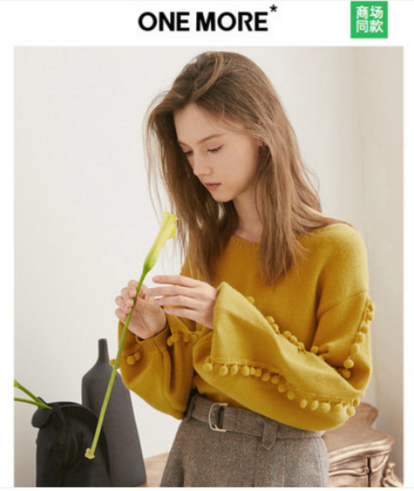 ONE MORE2018冬装新款灯笼袖针织衫毛衣女长袖上衣宽松套头打底衫