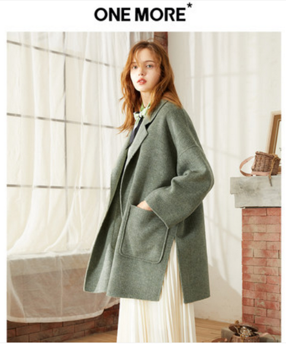 ONE MORE2018冬装新款双面呢羊毛大衣女中长款毛呢外套韩版小个子