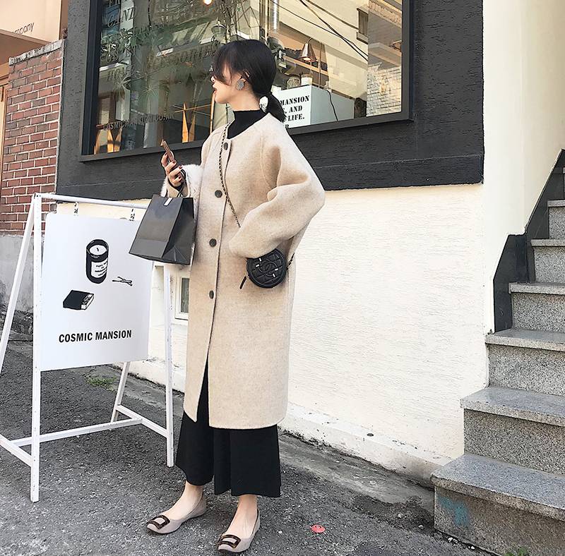 南瓜谷双面呢大衣女小个子秋冬装2018新款全羊毛毛呢外套女MN086