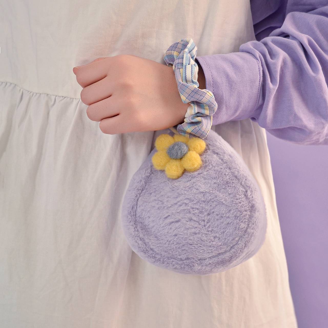 [献给爱丽丝] 紫色花朵毛绒口红包女手拿 手挽零钱包迷你小包包