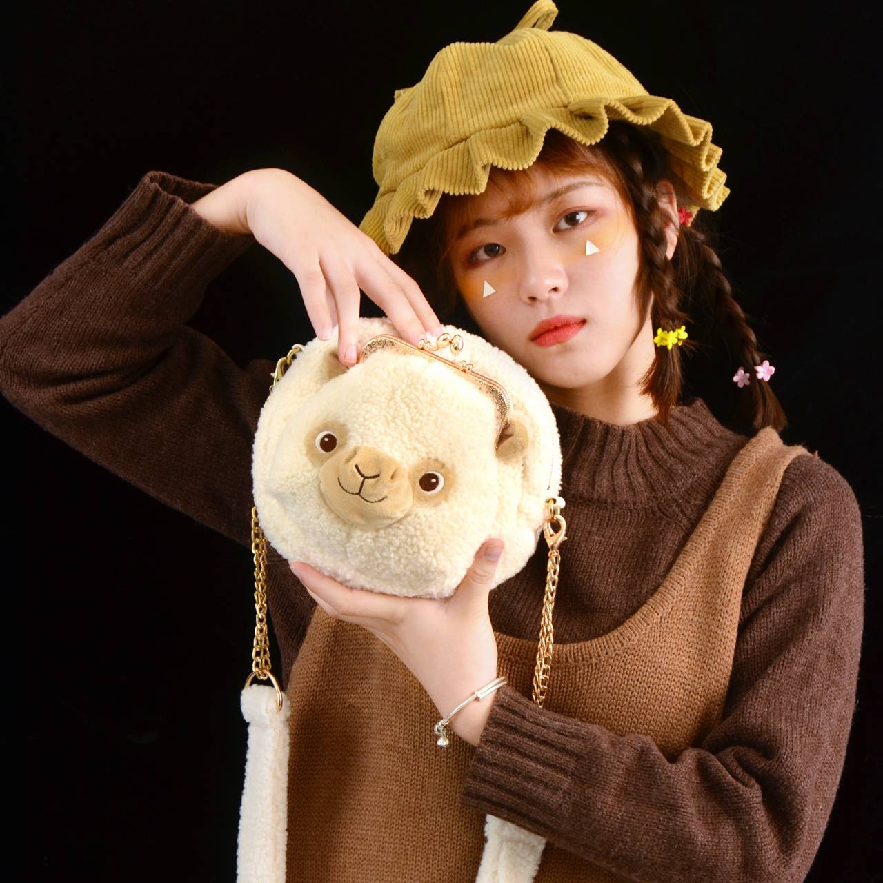 可爱卡通小包包毛绒绒女包 少女百搭羊羔毛斜挎包