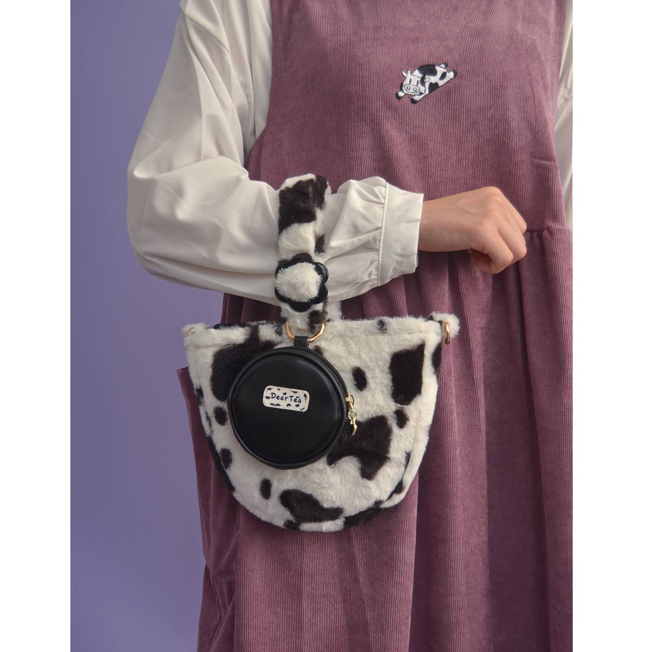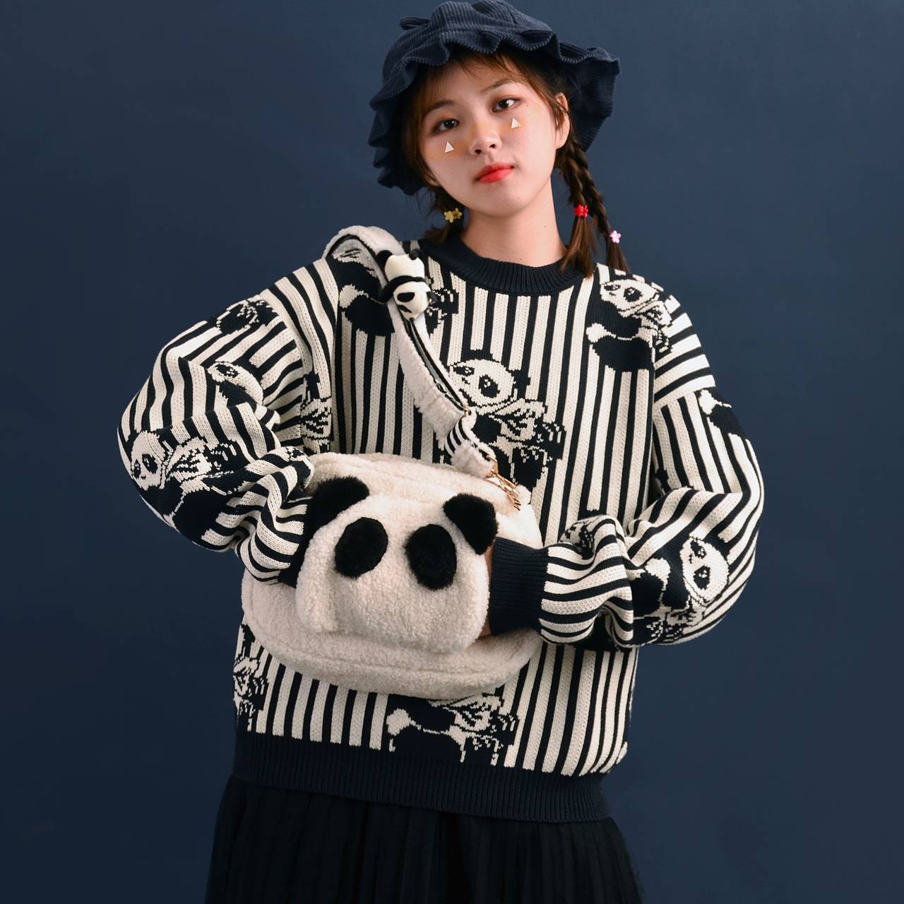 原创羊羔毛熊猫包包女斜挎 可爱毛绒斜挎包大容量单肩包