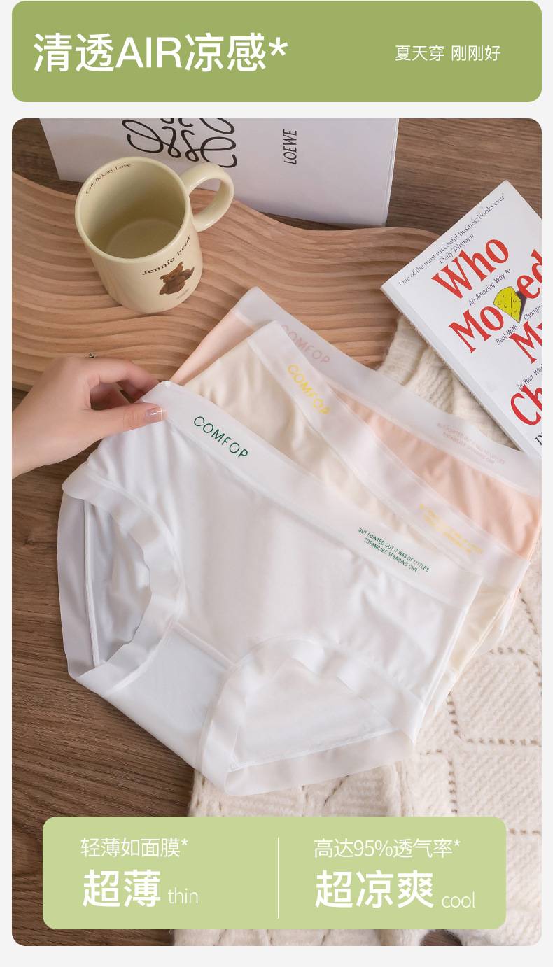 宝娜斯无痕内裤女冰丝夏季薄款抗菌裆中腰运动透气少女三角短裤