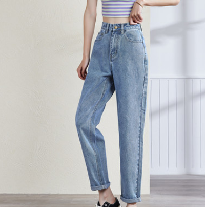 2021年春秋新款高腰牛仔裤女夏白色直筒宽松萝卜裤老爹裤哈伦潮