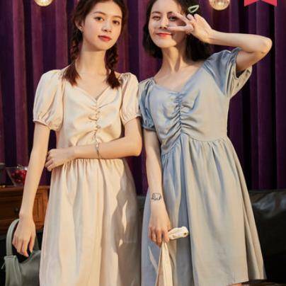 2021年夏季新款复古桔梗长裙仙女森系裙子雾霾蓝闺蜜连衣裙