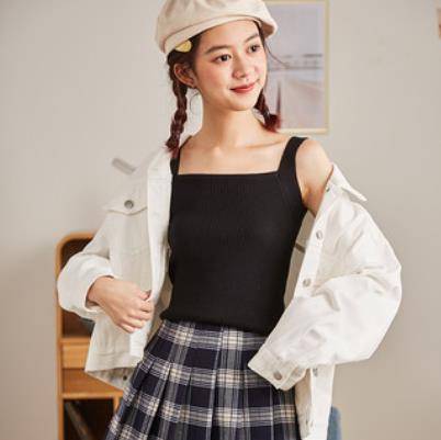 夏季吊带背心女内搭设计感小众外穿上衣打底西装针织小背心白黑色
