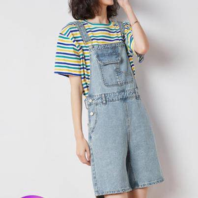 2021夏新款休闲背带裤女宽松高腰A字阔腿连体短裤大口袋减龄