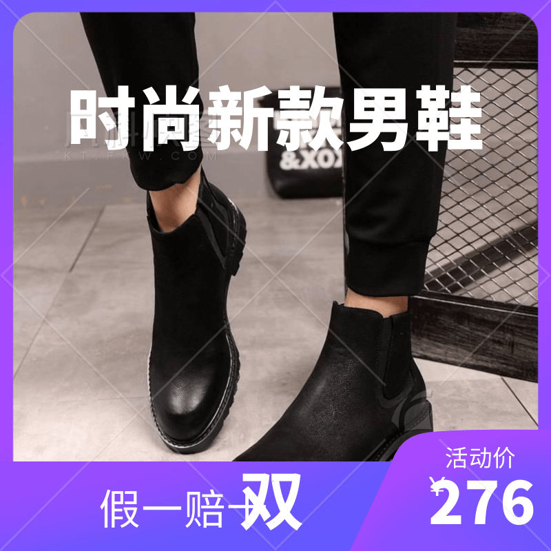 秋季一脚蹬潮流百搭韩版男靴切尔西靴商务马丁靴真皮靴内增高