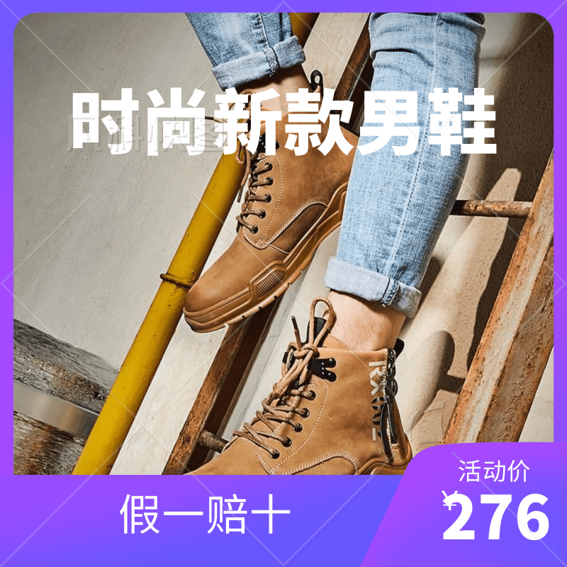 IZV马丁靴男高帮秋季新款真皮厚底工装鞋中帮短靴战术潮鞋G86602