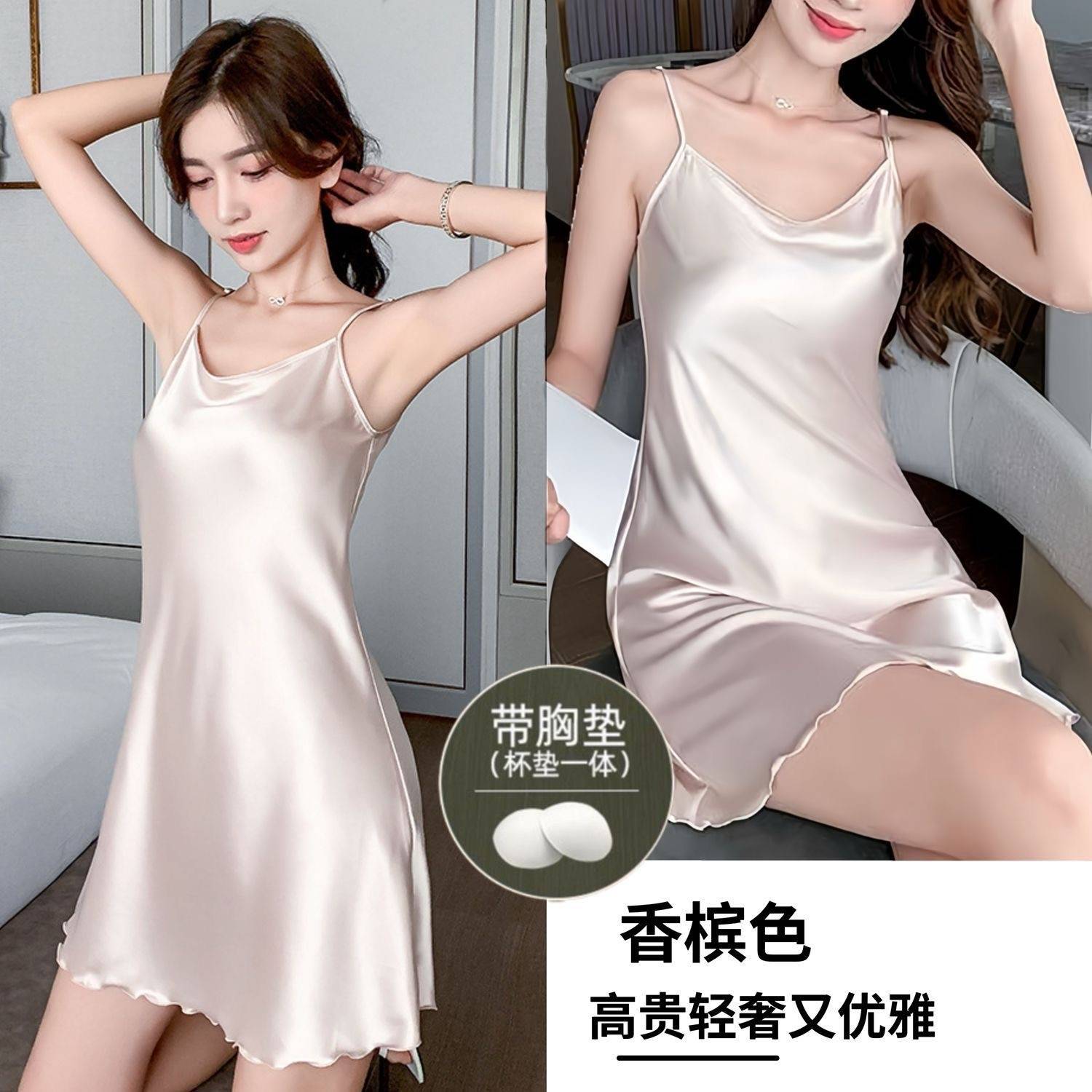 带胸垫冰丝吊带睡裙女新款夏季顺滑轻薄大码宽松舒适可外出居家服