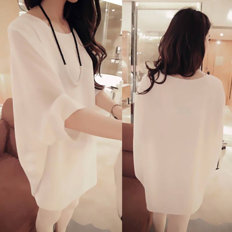 香港韩版女装宽松t恤女夏中长款雪纺衫大码上衣蝙蝠袖夏装连衣裙