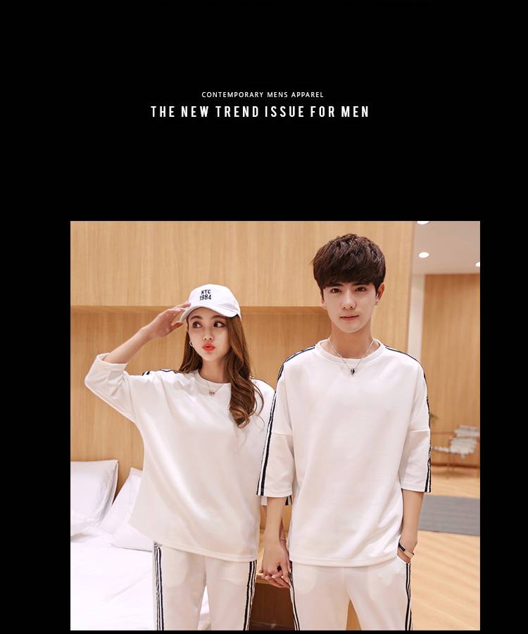 情侣装2018夏季宽松短袖T恤男女圆领韩版运动两件套装学生班服潮